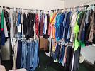 Lots of kids clothing, shoes, toys, misc. Gym, file cabinets, desk
