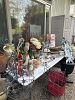 The house, garage, storage sheds and yards are filled with quality, useable items. We have a huge range of contractor tools, garden tools, garage tools and car repair items. There are unopened boxes of fixtures, and duplicate tool items as well as scuba gear, camping stuff, men's clothing, kitchen and house hold appliances, cleaning supplies, gardening supplies, garden statuary, fountains, barbeques, bicycles, patio sets and garden decor, clocks, books, easy chairs, couch, beds, pillows, office supplies, stereo, LPs and ***, kitchen items, dining set, sideboard, mirrors, artwork. Lots of really useful goods to be found at this sale.