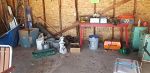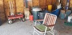 Yard and garden including lawn chairs, shovels, rakes, etc., ladders, tools, leaf blower, seed spreaders.