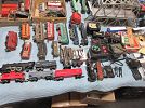 Pre-War tin trains and cars (some with boxes). A few HO items.