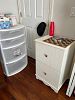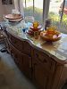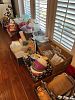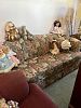 tea cart, ornate lamps, two dining tables with matching china cabinets, dolls-all sizes, two desks, masks,Boyds bears figures,