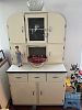 so much crystal stemware, Sango china ‘Rhapsody’, Thomas Kincaid ‘Celebration of Light’ house figures, antique Hoosier cabinet
