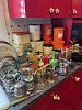 over 50 insulated tumblers, full pantry, Pyrex mixing bowl set, Singer sewing machine, Bissell spot lifter, Sunbeam stand mixer,
