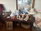 Dolls, Sikes DR table, 6 chairs & hutch, household, Viking & singer sewing machine, holoidays, furniture, garden items, books & more!
