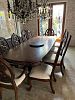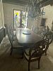 Large formal dining room set with 10 chairs, round kitchen table with 5 chairs, dresser and mirror, headboard, area rug and some Knick knacks