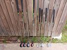 20" Murray walk behind mower, bicycle tire tubes, hard surface steamer, golf clubs, golf balls. Christmas lights,