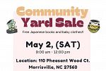 This will be a multi-family yard sale with **15 families participating**, offering a mix of clothing, household goods, kitchenware, toys, home décor, Japanese vintage items, baby items, and more.