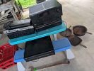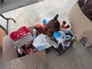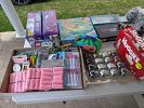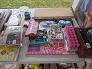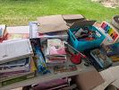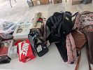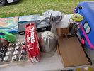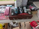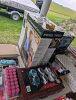 Stereo equipment, albums, CDs, video games and consoles, music equipment, weight bench, golf clubs, bow, hunting equipment, tools, clothing, shoes, cast iron pots, vintage Tupperware, purses, etc.