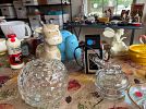 Tons of vintage glass and small antiques . Some 78 Record Albums and some Star Wars trading cards from the 1990's.