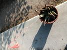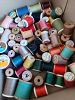 Women's clothing, dragon fruit, shiso, pink aloe, earrings, Royal Copenhagen Christmas 1992 plate, Salton hot tray, Krups coffee bean grinder, various sewing threads with some on wooden bobbins at Booth 30