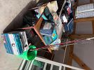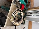 Clothes sizes large to XXL, fishing equipment, ottoman, rugs, bike rack, home decor, hedge trimmer, electrical cords, shoes, new reciprocating Dewalt saw and weed wacker.