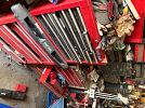 One car garage full of tools. Craftsman Stanley. Many new in box. Bandsaw. Chopsaw bench sander.