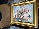 Yarn ribbon , silk flowers pictures , vintage drawer handles and pulls ,lamp shade