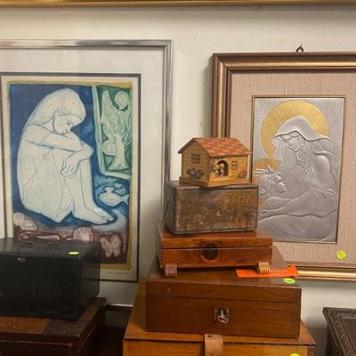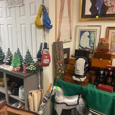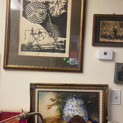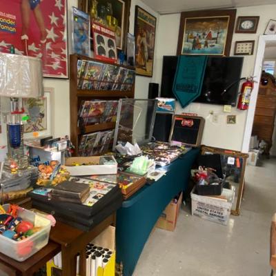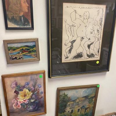 Collectables and all Types of great items for sale. This is not an Estate Sale - 5th Annual New Year’s Eve and New Year’s Day Sale. Artwork: Oil Painting, Watercolors, Lithographs, Etching, Prints, Posters, Comic Books, Signed and 1St Edition Books, Toys, Games, Antiques, Hot Wheels Redline cars, Furniture, Vintage Color plate Prints from the "Ceramiques De Picasso" series, Glassware, China, Pottery, Records LPs and 45s, Accordions, Guitars, Violin, Ephemera, Jewelry, Lamps, 1930s Lead Reverse Painted Slag Glass Lamp possible BRADLEY HUBBARD, One of a Kind Custom Steampunk Lamps, Rugs, Polynesian wood Carved Idols, Vintage Steiff animals, Clawfoot piano bench stool, Clocks, Vintage G I Joes, Post Cards, Lighters, Trains, Vintage mixing bowls, Antique Wooden Boxes, Ceramic Holiday Christmas Trees, Chippendale Style Mahogany Pedestal Base Pie Crust Tilt Top Table, Large Natural Amethyst Crystal Geode, Knives, Assorted Sports and Non Sports Cards, Vintage Cameras, Vintage Novelty Beer Taps, Velomotors Testi Moped, Vallantine Trays, Esso & Enco Oil Cans, Guitars, Accordions, Political Pins, Disney pins, Fortnite figures, Singer Sewing Machines, Spoking Pipes, Hand Crafted Totem and so much more. Small List of what's available for sale: #no/artist/Disc/size/name****#1/Roy M Steinberg/oil or acrylic/14x11/lady playing w/apple, Expressionist Artist Abstract****#2/John Newel Lewis//16x13/St. Martin West Indies****#3/Alron Products 969/Env Stamp & Plaque//Highlights of Apollo 11****#4/R. M. Steinberg//40x15.5/Gesso on Board****#5/Chris Riggs/Modern Abstract Impasto Oil/25x21/****#6/Pierson Massing/MCM Abstract/39.5x28.5/Painting****#7/Signed ???/Oil Painting//3 Trees****#8/Toney Agostini 1916-1990/Oil Painting/13.5x10.5/Vase w/flowers still life Italian/French****#9/Elvin Dean Mauk 1929-2006/watercolor/19x12/from Ogden Illinois****#10/Local Edison artist/Original AW/F 26x20/Black Light Original Artwork****#11/Miriam Fried 1916-2014///****#12/Miriam Fried 1916-2014///****#13/Miriam Fried 1916-2014///****#14/J. Harrison //46.5x34/Lady with view****#15/J Collins/Oil on Board/25x21/Fruit still life****#17/Pablo Picasso/Litho/17x21/Vol III****#18//Acrylic or oil w/pen/19x20/Deck overlooking water t/trees****#19/Tarkay//54x39/"Jacquelin" signed sitting lady****#20/Irving Amen/AP/18.5x25/Dreaming Girl****#21/Buinel /Marked 925//Mary with Child Silver & Gold****#22/Ann L "Schlehr" Klaus NY 1933-1991//12x24/Wildflowers****#23/signed ???//16x18/"old Man"****#24/E Finberg/oil/17.5x14.5/Dog by tree****#25/Alexander Klevan/watercolor/35x27/Lady in Blue****#26//pen&ink/9x11/Face****#27/Robert Ferris//28x32/MCM flowers Still life Abstract****#28/Radha Krishna/Painting//Krishna sitting in Grove****#29/Ed Kojola/watercolor/F 17.5x21.5/Lady cleaning Window****#30/Currier & Ives/Litho//"Papa's New Hat"****#31/Armand Coussens 1881-1935/Hand Colored/F 18.25x17/French****#32/C Emanuel/Oil//Old Mariner & Child****#33//poster/f 29x25/"le Oiseaux - Du Voyage The Birds of the Journey"****#34/signed ???/origianl AW/f 28.5x22.5/"institution" Ladies at Fence****#35/CR L C Chase & Co/Philip R. Goodwin/F 23x33/Moose in stream****#36/signed ???/painting/f 119x23/floral****#37/Zed Balling/painting/f 17x21/Native American ****#38/John Singer Sergent/Print/f 31x24/"Oyster gatherers"****#39/Imp Eugene Verneau/poster/f 25x33/Theatre Antoine LaGitane de Richepin Paris****#40/Leslie Emery/hand Colored//Clowns****#41/Maurice Menardeau/LR Litho//Sail Ship on calm water****#42/Sketcher/print pencil signed/f 31x25/"study for April wind" B&W print by Andrew Wyeth ****#43/J Ross Bryson 1856-1918/Chromolitho//Art Nouveau Lady ****#44/Philip Maxwell/AP Serigraph COA 2/250/f 37x30.5/"The Jazz Club"****#45/Nikiforove/watercolor COA/f 28x26/"Musica Symphony ii"****#46/Velez/painting/20.5x28/Red & Black Ship****#47/Emanuel///Sweet Yesterdays by Emanuel****#48/Leo Russell/Litho Plate no. 16/26.5x32.5/"the Mystical Sphere****#49/French/B&W ???/15x19/"Les Vendanges" Grape Harvest****#50/French/B&W ???/19x15/Court Couples****#51/signed ???/Impasto oil/18.5x23/Floral Painting****#52//String Art//Vintage string Art****#53/Ozanne/Engraving/f 12x10/Ozanne del "Jeanne Francoise Ozanne Sculp"****#54/Raphael Esterida/Copper Enamel/f13x11/"Sun Rise"****#55/R.H. Palenske/Print/uf12x10/"A Bit of Heaven"****#56/Frantz Charlet//26x22.5/Baby In in Crib****#57/Marantz ???/68/200/f19x24/MCM Purple ****#58/L. Denisk ???/MCM Abstract//MCM Abstract****#59/Krashe/Oil MCM Painting//Waterloo Bridge****#60/Henri Toulouse//21.5x17.5/Lautrec Dog Partie de Campagne F.C.****#61//Painting//"Cottage"****#62/Ella B. Raynolds/watercolor/8x11/Flower painting****#63/A. Benton/Oil Painting/8.5x11/cow in field****#64/W. Leo Arndt///"mourning death of Ludwig Van Beethoven"****#65/M.C. Escher/Litho/26x22.5/Convex & Concave by Van Dooren****#91/Martin Luther 1483-1546/print//Antique Portrait****#95/Lee Kirner/OA Oil//Moose in water****