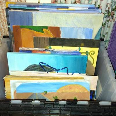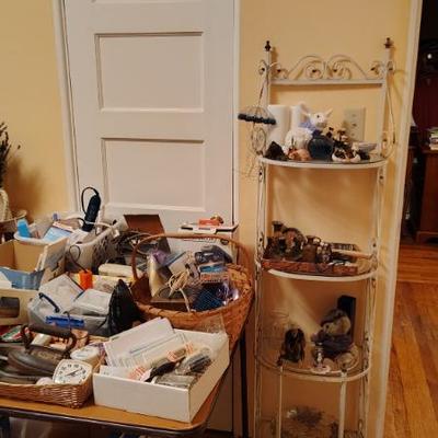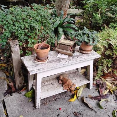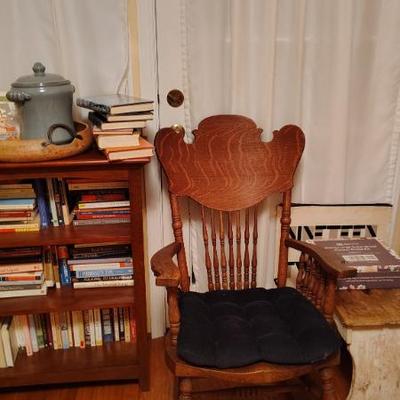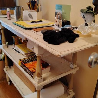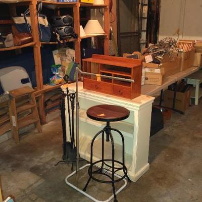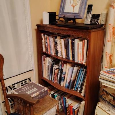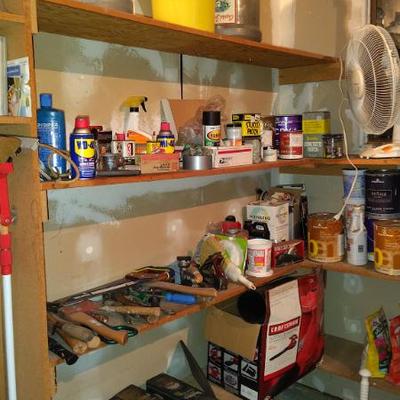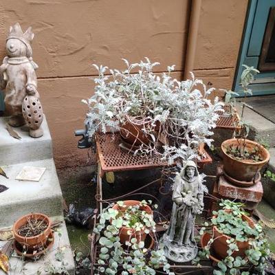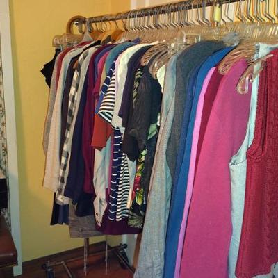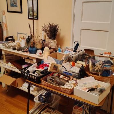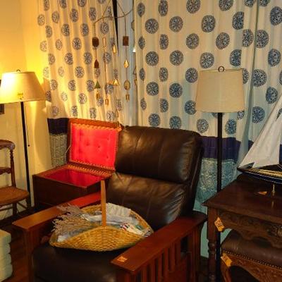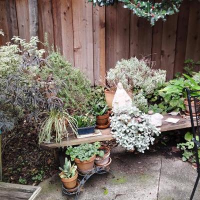 Cute Capitola cottage arranged so neatly the cool older gal who owned the home was into some metaphysical, feng shui, loved gardening, an avid reader, painter/artist her items speak of simplicity though thoughtfully p[aced we have shelves and shelvesand shelves of books- sci fi, series books, pyscology books, novels, art books, history books, metaphysical books, childrens books, several boxes of records, a few cassettes and cds two racks of good quality clothing, purchased from LL Bean, Lands End, other misc quality vendors mostly petite medium, a suede and 2 wool jackets one long, one pea coat length, some cashmere sweaters, some size 8-8-1/2 womens shoes-no mens clothes, quite a few hats, light on accessories- ie: belts etc a mission style bed end bench,sweet simple desk with a neat antique barrel chair,farmhouse trunk/chest, cute vintage shelf, antique sewing/yarn chest, side table and ottoman highly carved wood- just lovely, vintage buffet, several bookshelves of varying sizes, a round pine dining table with one leaf, several mismated antique chairs, a vinyl mission style recliner, a sturdy shabby white desk with side popup leaf, lamps several for tables and several floor lamps, miscellaneous small tables and nice sturdy small vintage cabinet, a sturdy vintage rocking chair full size, art includes a few simple prints, and a lot of art done by the homeowner. Art supplies, including quite a few blank canvases, and one large roll of canvas to paint on a flower press kit A lot of miscellaneous kitchen, silverware by fiesta, a few random fiesta pieces, one large-extra large Roseville mixing bowl, a small china set, a good quantity of modern cast iron cook pans the garden features a garden table created from an antiqueSinger sewing cast iron base, two garden chairs, a half round cement bench, a lot of plants small medium and large, a few cement statues, many plant stands, empty planting pots, several galvanized garbage cans, a nice wood bench, othermiscellaneous garden lots of garage items, including a long extension ladder, misc garden tools, wires, a blower still in box, a slide projector, car cover many misc items even an old screen door a bit of free leftover paint