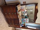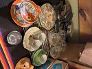 Living room furniture, tons of vintage, vintage Pyrex, two dining sets, vintage typewriters, vintage cameras, vintage linens, vintage bedroom set, trunks, pool table, vintage toys, vintage suitcases, tons of books, vintage clothes, kayak, glassware, TVs, file cabinets, patio furniture, pots and planters, washer and dryer, small kitchen appliances, lots of OSU, vintage China hutch, tons of Christmas, art, lamps, vintage hobnail bedspreads, pub table, vintage lanterns, king size bed, kitchen misc, vintage chandeliers, recliner, couches, end tables, coffee tables, vintage marble top coffee table, vintage military blankets, this is a good one!!