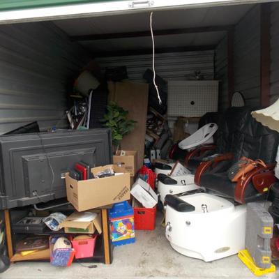 Bedroom sets, desks, chairs, lamps, dining set, lots of clothes and shoes, baseball cards, books, bar table, tools, TV and much more.