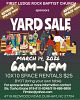 Church Yard Sale Saturday March 14th 6am-1pm 10x10 space rentals for $25 available.