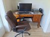 elec. piano,antique secretary, linens,lamps,women’s plus size, very nice purses,backpacks,crystal,flatware,4 cases beige tile,Sharper Image...
