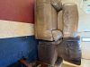 Salmon Falls Pottery, vintage bowls, sewing machine, sewing basket (full), vcr player incl vcr tapes, handicap tub bench, coolers, TV tray tables with stand, Christmas stuff (many from Hobby...