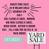 Yard sale 4/11 from 8-12:30 with YARD SALE PRICES!!