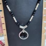 Black beaded necklace with wood beads