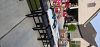 wheelbarrow, lawn roller, composter, 36 white 12X3 edgers, 80 red 6X3 block edgers, 10 48X 2 rubber edgers, hand tools, pole trimmer, 25 flower pots, X larger dog crate, dog ramp, other items...
