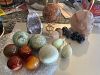 Clearing out my garage and storage this Saturday. I have a few pictures of items available and some I don't. I have 2 wooden shelves with attached chalkboard, some gemstone skulls & spheres , a...