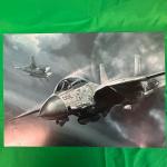 A large poster featuring an F-14 Tomcat in flight, accompanied by another jet in the background. Dimensions: approximately 36 x 24 inches. Medium: printed on glossy poster paper. Condition: appears...