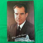 Color photograph of Richard M. Nixon, featuring his facsimile signature. Capitol building printed below the signature. Dimensions: approximately 8 inches (H) x 10 inches (W). Appears to be a...