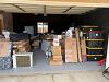 Books, furniture (antique chairs, king bed frame, kitchen 5 tiered standing rack, marble top set of drawers), clothes, hats, pottery, frames, sewing machine, tools, work tables, table saws, camera...