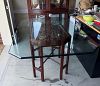 Fishing equipment, tools, household items, antique Chevel floor mirror, silk Chinese wall hanging, antique handkerchiefs, horse saddle stand, horse water bucket, antique porcelain boxes from...