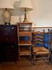 Wide range of items from MCM queen bedroom set, dining room set, console, curio cabinet, TV tray sets, wood folding chairs, lamps and matching swag light, records, DVD’s, cassette tapes, clocks,...